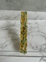 Crafted with precision, this Mezuzah embodies serenity with its Marble of hint of gold case and flickers of gold and green fire glass. The gold shin adds divine symbolism, making it a timeless fusion of tradition and elegance.
